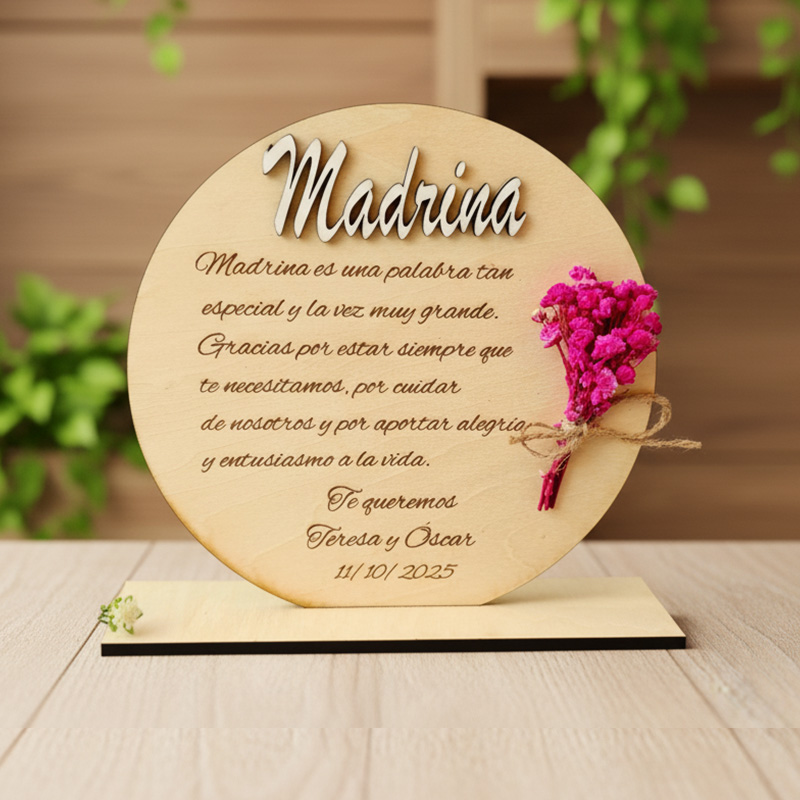 Placa Madrina , personalizala como mas te guste, Padrino, Herman@, Abuel@, Tios, Amig@ . Medidas 3mm / 18cm de diametro + base